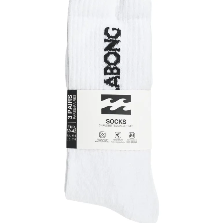 Billabong Unisex Crew Tennis Calcetines 3 pares blanco BG-01 CREW