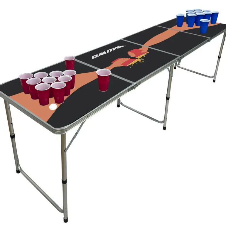 - Conjunto compuesto por una mesa plegable y 22 tazas (11 rojas y 11 azules)