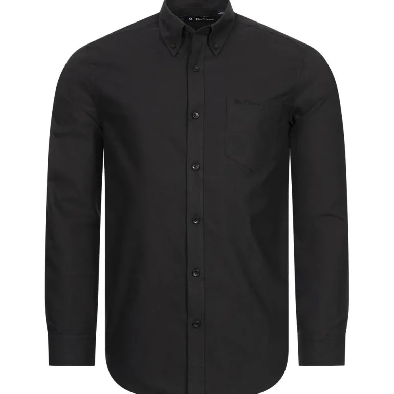 BEN SHERMAN Oxford Hombre Camisa de manga larga 0077857-BAREALMENTE NEGRO