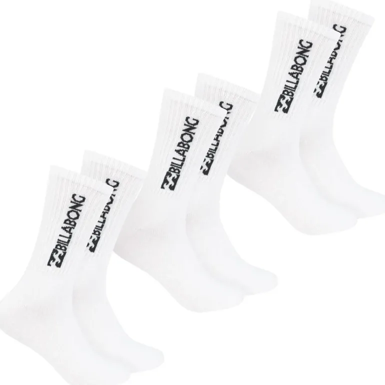 Billabong Unisex Crew Tennis Calcetines 3 pares blanco BG-01 CREW