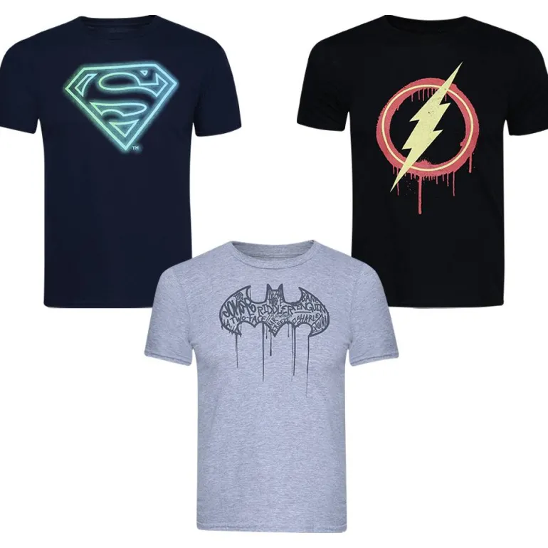 CÓMICS DE DC Superman Batman Flash Niño Camiseta Pack de 3 CDBPK298MUL