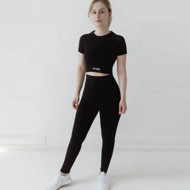 JELEX «Chiara» Mujer Top de fitness de manga corta negro