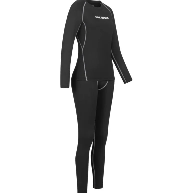 KIRKJUBØUR® «Hafjall» Mujer Conjunto de ropa interior térmica 2 piezas negro