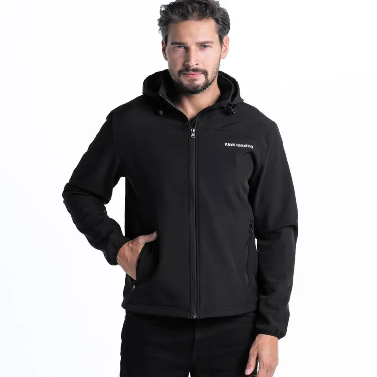 KIRKJUBØUR® «Hestur» Hombre Chaqueta SOFTSHELL 10.000 mm columna de agua negra