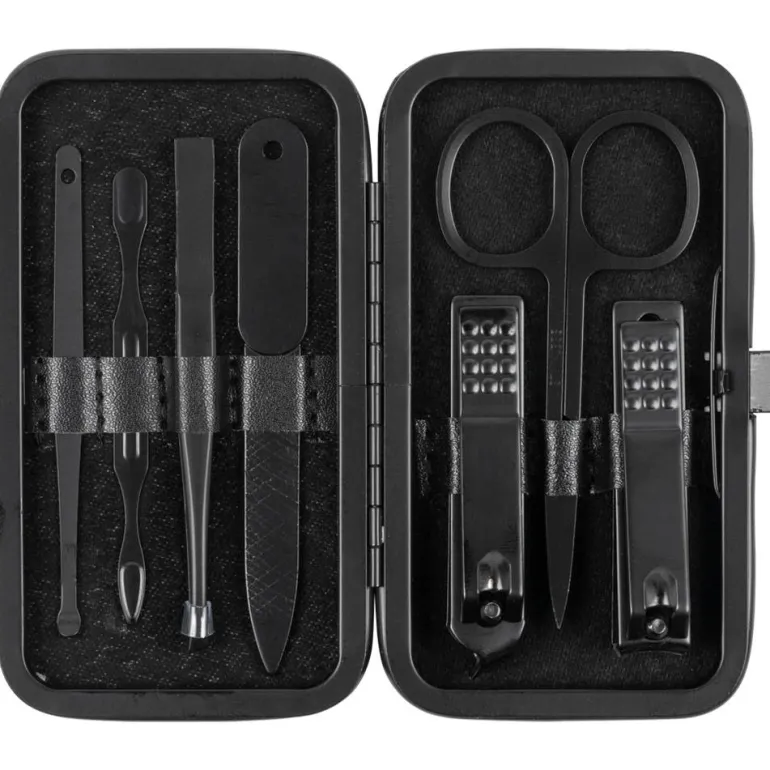 - Conjunto contiene 1x tijeras, 1x cortacutículas, 1x cortaúñas, 1x lima de uñas, 1x limpiador de uñas, 1x pinzas, 1x limpiador de oídos y 1x estuche.