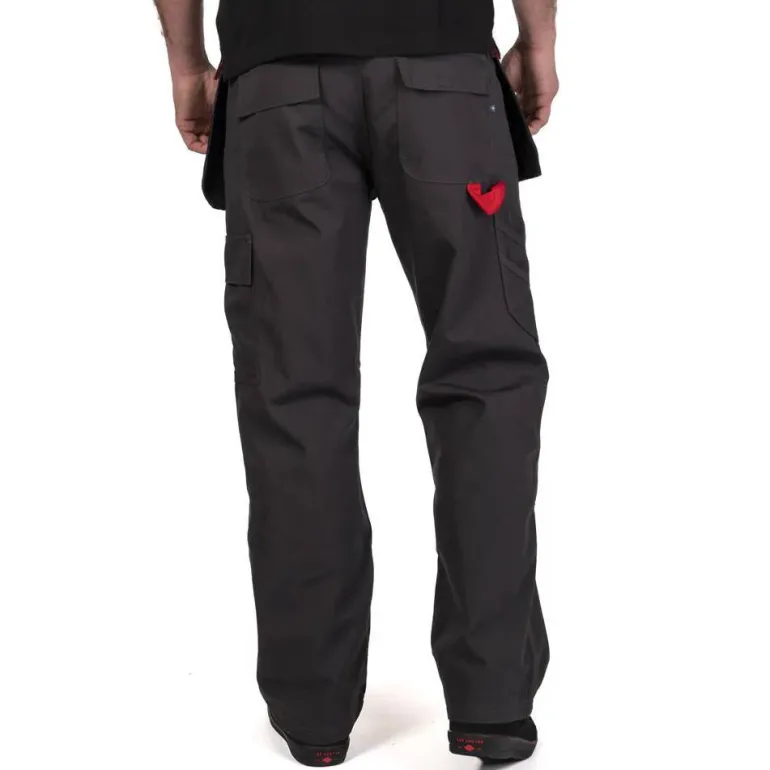 - Presilla para martillo y bolsillo largo para herramientas en la pierna derecha