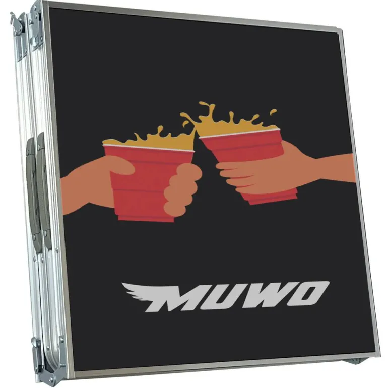 - Conjunto compuesto por una mesa plegable y 22 tazas (11 rojas y 11 azules)