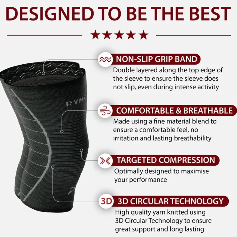 - Proporciona compresión y soporte para la articulación de la rodilla.