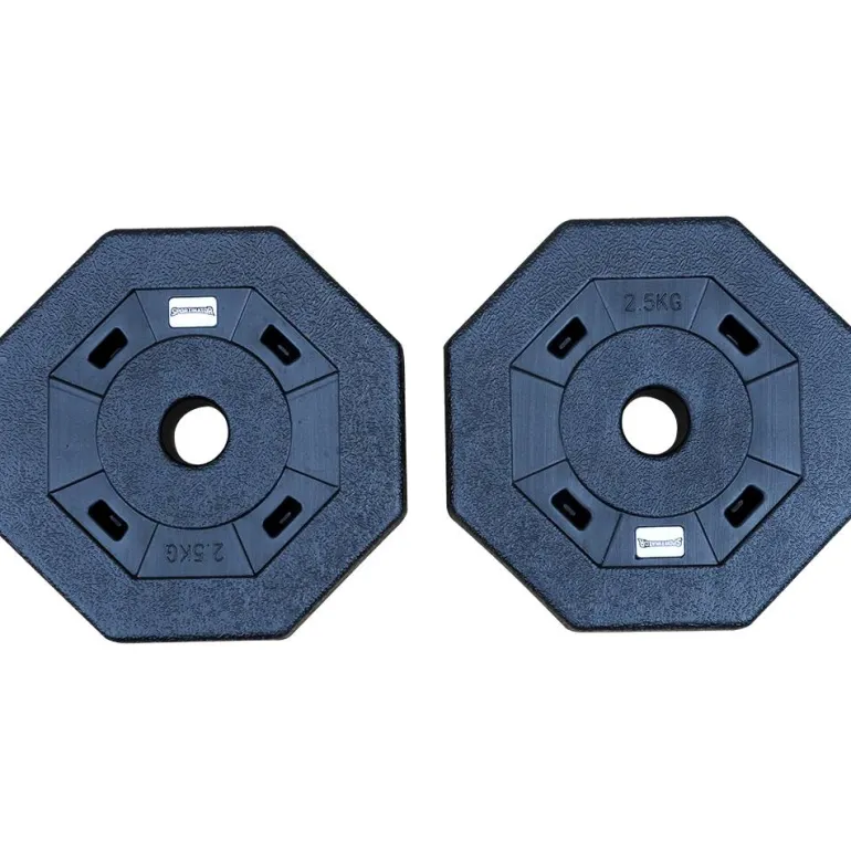 - Conjunto compuesto por 2 discos de pesas de 2,5 kg cada uno